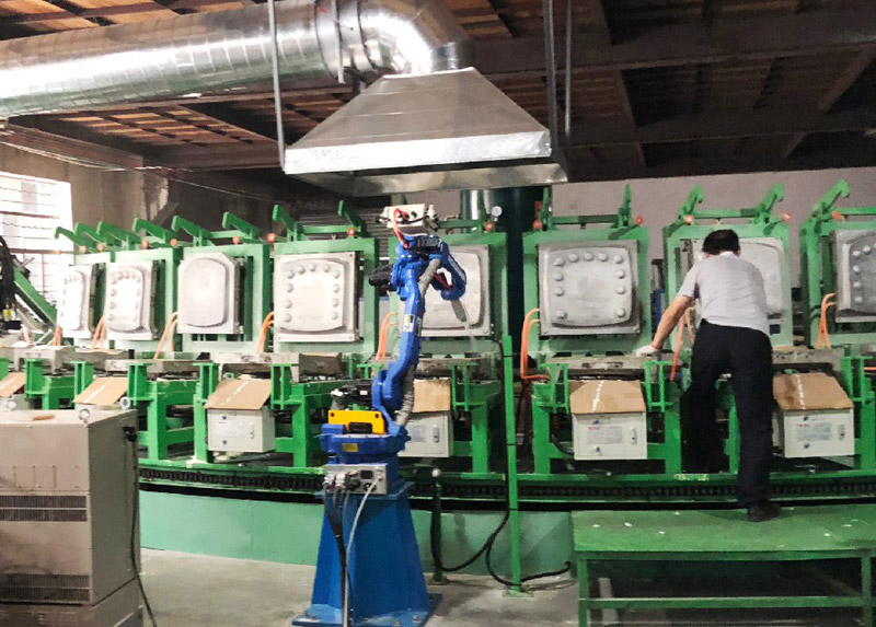 ④熟化:被澆筑的模具通過閉模器進(jìn)行合模,在一定的壓力下進(jìn)行熟化成型;