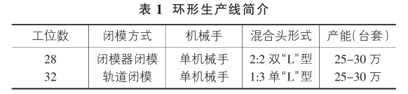 干部設(shè)備主要由模架車、閉模器、液電氣控制系統(tǒng)組成;濕部設(shè)備主要有高壓發(fā)泡機(jī)、計(jì)量系統(tǒng)、液壓站等。橢圓環(huán)形線具有工位多、換模節(jié)拍短等優(yōu)點(diǎn),目前座椅發(fā)泡工廠多采用環(huán)形生產(chǎn)線。
