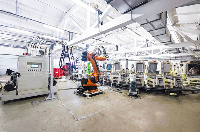 先進(jìn)的設(shè)備配置:生產(chǎn)線配備了全自動(dòng)模具模架、機(jī)器人、聚氨酯發(fā)泡機(jī)、預(yù)混站、真空破泡機(jī)等一系列先進(jìn)設(shè)備。各個(gè)設(shè)備由系統(tǒng)緊密連接,協(xié)同工作,不僅具有自動(dòng)糾正、報(bào)警等功能,還能確保生產(chǎn)過(guò)程的準(zhǔn)確性和安全性。