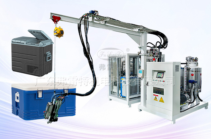 聚氨酯發(fā)泡機在保溫箱和車載冰箱中的應(yīng)用主要通過高效注入聚氨酯泡沫材料(PU)作為隔熱層,以提升產(chǎn)品的保溫性能。以下是其具體應(yīng)用方式及關(guān)鍵點: