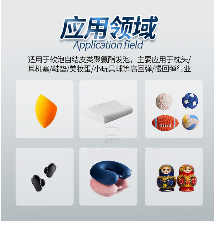 適用于軟泡自結(jié)皮類聚氨酯發(fā)泡,主要應(yīng)用于枕頭/耳機(jī)塞/鞋墊/美妝蛋/小玩具球等高回彈/慢回彈行業(yè)