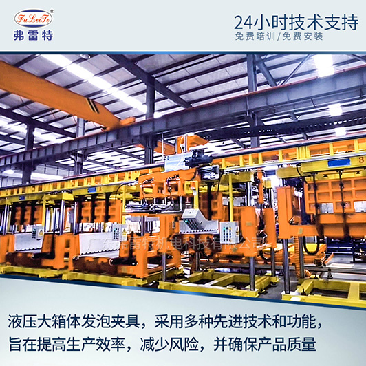 通過在發(fā)泡機上設(shè)置可讀取箱體條碼并與發(fā)泡機設(shè)定型號進行匹配的傳感器,使上箱平臺上的預(yù)裝箱體依次與至少一個發(fā)泡機進行匹配直至在相匹配的發(fā)泡機上進行發(fā)泡,以完成同一生產(chǎn)線上進行多種規(guī)格的發(fā)泡。 該發(fā)泡線采用直線式布局,夾具各模板采用水加熱方式。夾具具有自動堵泡和自動抽芯功能,換模采用氣缸或人工驅(qū)動連桿機構(gòu),有人工控制和電氣控制雙重自鎖功能。、適用于不同長、寬、高的箱體生產(chǎn)。生產(chǎn)線具有外形美觀大方、結(jié)構(gòu)緊湊、環(huán)境污染少、勞動強度小、占地小、功能強、生產(chǎn)效率高、多品種柔性生產(chǎn)等特點。