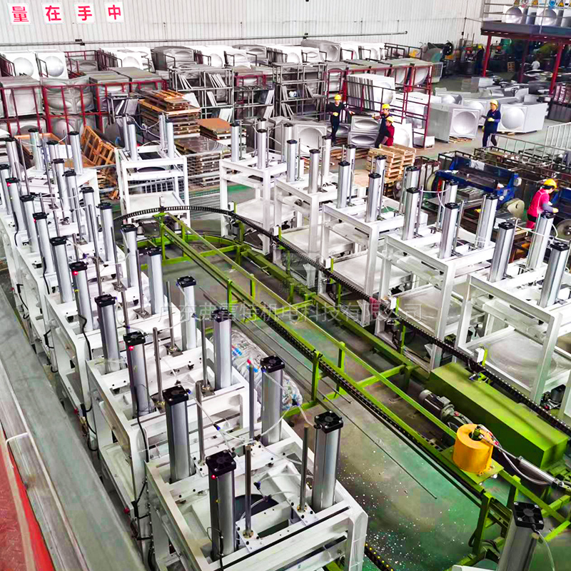 整條保溫水箱環(huán)形生產(chǎn)線共15個工位,放置了氣動高壓聚氨酯保溫水箱發(fā)泡模具模架。從整體框架焊制,到電氣安裝設(shè)置,全都是由我們弗雷特設(shè)計安裝。這款氣動模具模架,可自動上下升降,也帶有臨時控制按鈕,十分高效便利。保溫水箱發(fā)泡生產(chǎn)設(shè)備,全套定制,方案、設(shè)計、制造、安裝,一條龍服務(wù)。