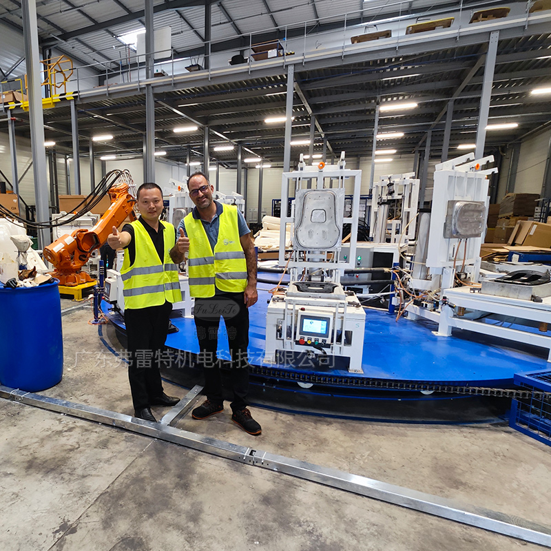 這是弗雷特生產(chǎn)的汽車座椅轉(zhuǎn)盤生產(chǎn)線,感應(yīng)機(jī)械臂澆注,自動(dòng)開合模具,效率高,生產(chǎn)簡便。全自動(dòng)機(jī)械臂澆注,澆注準(zhǔn)確,發(fā)泡穩(wěn)定,生產(chǎn)效率高,機(jī)械臂能夠完成軌跡澆注的要求,簡單操作,可以減輕員工的勞力。