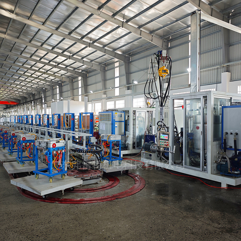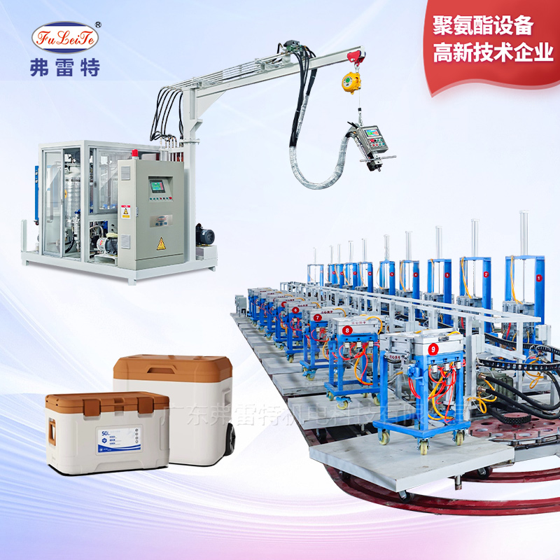 聚氨酯保溫箱自動(dòng)化發(fā)泡機(jī)生產(chǎn)線。應(yīng)用領(lǐng)域包括車載保溫箱、釣魚(yú)保溫箱、小冰箱等等。聚氨酯發(fā)泡機(jī)生產(chǎn)線配套了弗雷特環(huán)戊烷發(fā)泡機(jī),設(shè)置了安全防靜電圍房,無(wú)氟發(fā)泡及環(huán)戊烷安全檢測(cè),警報(bào)及處理系統(tǒng),令環(huán)戊烷發(fā)泡機(jī)的使用變得更加安全和可靠。另外還搭配了發(fā)泡氣動(dòng)開(kāi)合模具模架,一鍵自動(dòng)開(kāi)合,節(jié)省人力,高效生產(chǎn)。