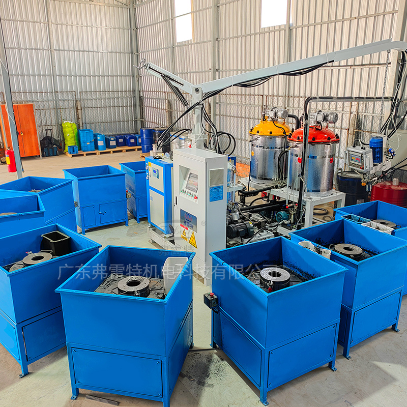 弗雷特PU輪全套聚氨酯低壓發(fā)泡生產(chǎn)線設備出口柬埔寨,全套發(fā)泡生產(chǎn)線設備已經(jīng)送到客戶工廠并安裝調(diào)試完成。整條生產(chǎn)線由10套離心機和1臺弗雷特低壓發(fā)泡機組成,澆注后使用離心機可以使原料分布均勻,發(fā)泡成型效果更好,整個操作步驟非常簡單。弗雷特的發(fā)泡機設備已出口到全球100多個國家,業(yè)務遍及歐洲、南美洲、東南亞、中東和非洲等地區(qū)。聚氨酯低壓發(fā)泡機參數(shù):