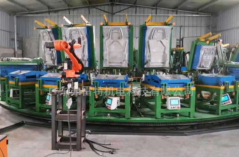 干部設備主要由模架車、閉模器、液電氣控制系統(tǒng)組成;濕部設備主要有高壓發(fā)泡機、計量系統(tǒng)、液壓站等。橢圓環(huán)形線具有工位多、換模節(jié)拍短等優(yōu)點,目前座椅發(fā)泡工廠多采用環(huán)形生產線。