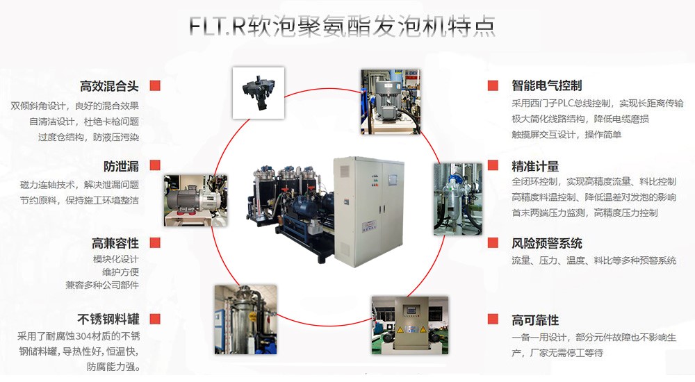 三組份、多組份聚氨酯高壓發(fā)泡機(jī)是將多種不同配方的生產(chǎn)工藝通過設(shè)備的配置及程序設(shè)定融合到一臺(tái)機(jī)器去完成。例如:三組份聚氨酯高壓發(fā)泡機(jī)的設(shè)定條件是B+A1或A2 ,當(dāng)工藝要求是B+A2時(shí),系統(tǒng)將自動(dòng)轉(zhuǎn)換成設(shè)定的要求B+A2進(jìn)行灌注。多組份的設(shè)定條件是 B1+ A1---B2+A2---B3+ A3最多6組份3種配方。