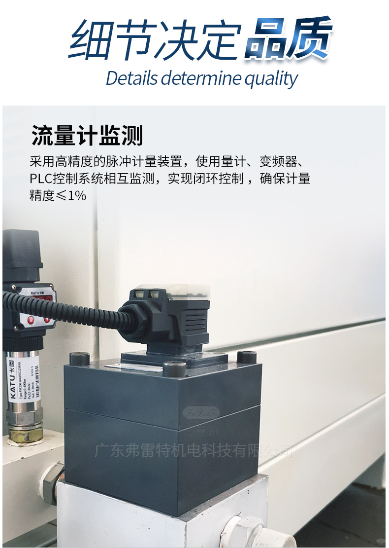 流量計(jì)監(jiān)測:采用高精度的脈沖計(jì)量裝置,使流量計(jì)、變頻器、PLC控制系統(tǒng)相互監(jiān)測,實(shí)現(xiàn)閉環(huán)控制,確保計(jì)量精度。